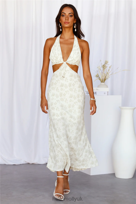 Don't get all Held Up, 'cause it's time to get flowery with a cute AF midi. Featuring a plunging neckline with a halterneck tie, a back tie, a dramatic midriff cut-out, and a long flowy skirt. Style yours with mules and waves.