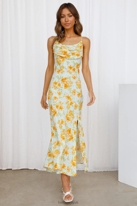 Sing To Me with your beautiful tone girl! This midi features a cowl neckline with a side silt. Style yours with sandals and twin braids.